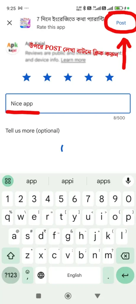 আপনাদের যদি আমাদের অ্যাপ ভালো লেগে থাকে এবং আপনারা যদি চান অ্যাপে আরো নতুন নতুন ফিচার যোগ করি তাহলে প্লিজ আমাদেরকে প্লে স্টোরে গিয়ে 5স্টার রেটিং দিন এবং আপনাদের কাছে কোন রকম টাকা পয়সা আমরা চাচ্ছি না শুধুমাত্র একটি ফাইভ স্টার রেটিং দেবেন এবং এটি করতে এক মিনিটও সময় লাগবে না।