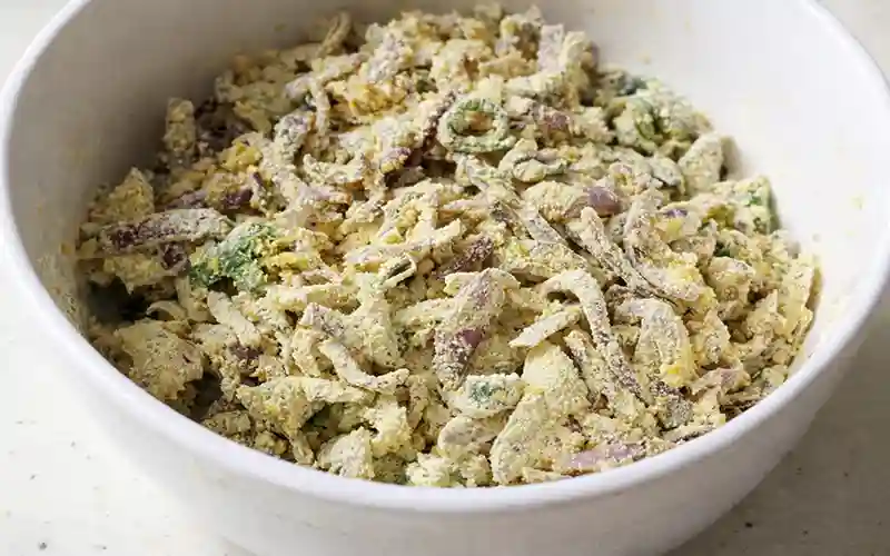 - কাজুবাদামের পকোড়া: কাজুবাদাম ছোট টুকরো করে ভিজিয়ে রেখে মিশ্রণে যোগ করুন।