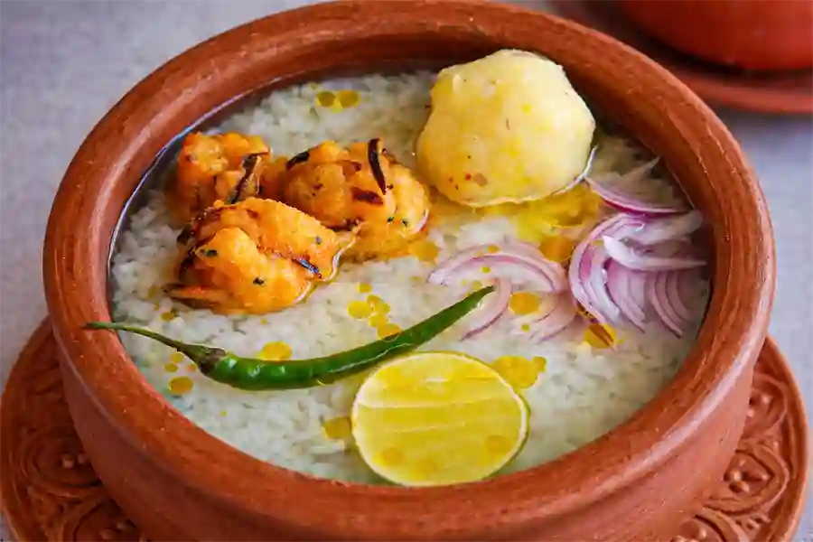 এখন আর সাধারণ খাবারের তকমা লেগে নেই পান্তার গায়ে। রেস্তরাঁর মেনুতেও ঠাঁই পেয়েছে এই খাবার। বিশ্বের নজরেও দর বাড়িয়েছে পান্তা। নববর্ষ উপলক্ষে বাড়িতেই যদি বানিয়ে ফেলা যায় পান্তা প্ল্যাটার, তা হলে কেমন হয়? রেস্তরাঁয় লম্বা লাইনে ঘেমেনেয়ে একাকার না হয়ে বাড়িতেই সেরে ফেলতে পারেন তৃপ্তির ভোজ। পান্তার সঙ্গে বানিয়ে ফেলতে পারেন রকমারি ভাজাভুজি আর ভর্তা। কী ভাবে সাজাবেন ভোজের থালি, কী কী রাখতে পারেন পান্তার স্বাদবর্ধক হিসাবে?