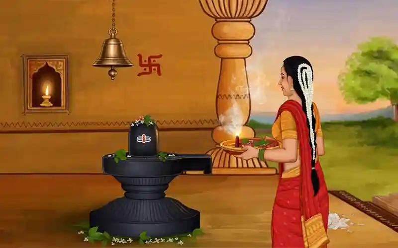 ব্যাধ যে গাছে আশ্রয় নিয়েছিল সেই গাছটি ছিল বেলগাছ। আর সেই গাছের নিচে ছিল একটি শিবলিঙ্গ। ব্যাধ গাছে নড়ে-চড়ে বসার সময় শিশির জলে ভেজা কয়েকটি বেলপাতা খসে পড়ে ঐ শিবলিঙ্গের মাথার উপর। সেদিন ছিল শিবচতুর্দশী অর্থাৎ মহাশিবরাত্রি।